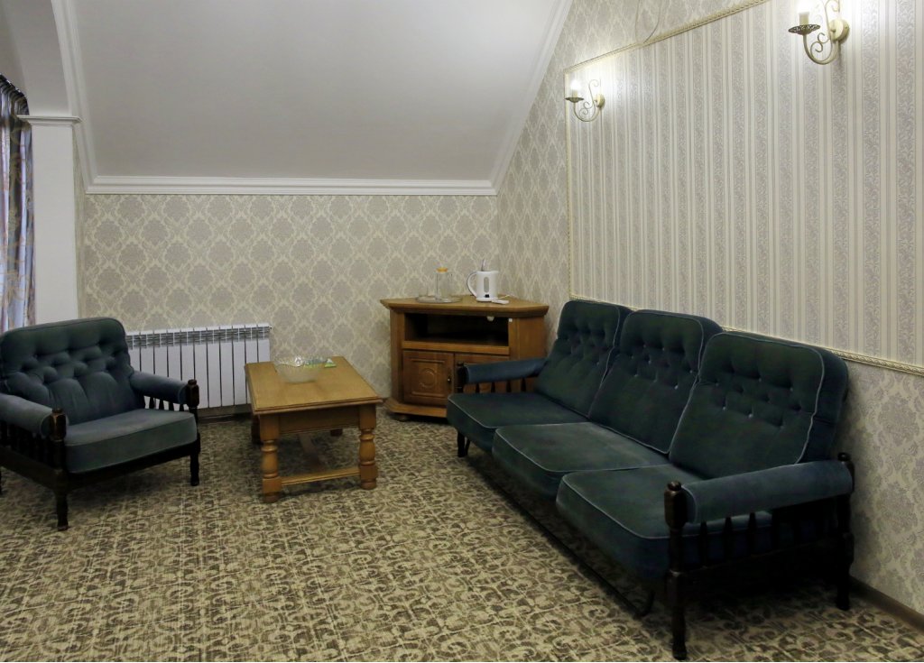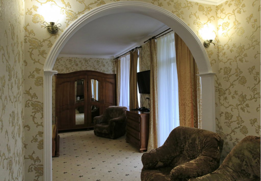 2 осн. места. 1 доп. место. Балкон. Мебель: вешалка, диван, зеркало, кровать двуспальная, прикроватные тумбочки, стол, стулья, шкаф. Оборудование: кондиционер, набор посуды, телевизор, телефон, холодильник, электрочайник. Санузел: с ванной, туалетные принадлежности, фен. Сервис: смена полотенец, смена постельного белья, уборка номера, услуги внутренней телефонной связи.