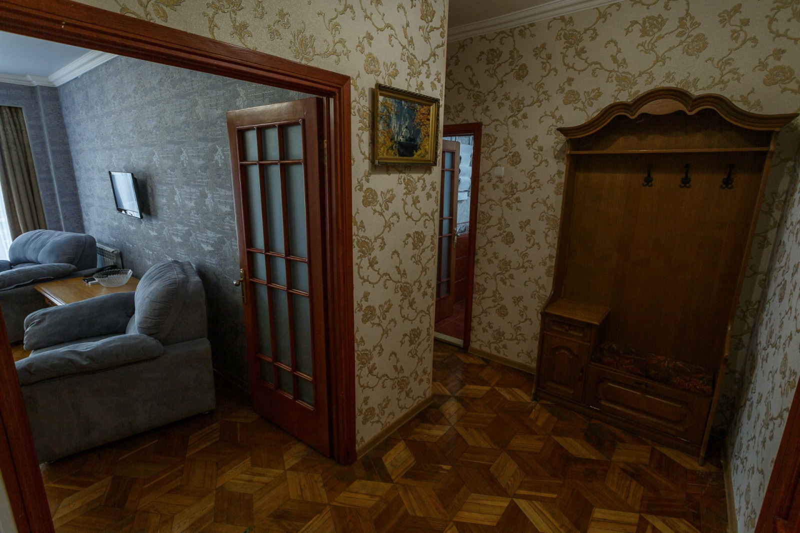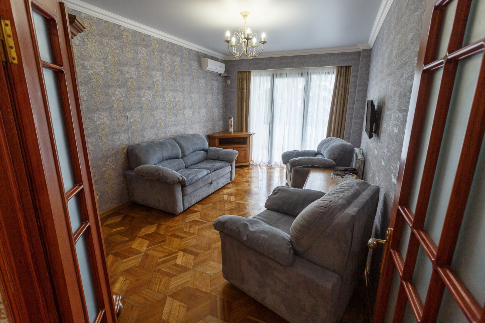 2 осн. места. 2 доп. места. Балкон. Мебель: вешалка, зеркало, кресло-кровать, кровать двуспальная, прикроватные тумбочки, стол, стулья, шкаф. Оборудование: кондиционер, набор посуды, телевизор, телефон, холодильник, электрочайник. Санузел: с ванной, туалетные принадлежности, фен. Сервис: смена полотенец, смена постельного белья, уборка номера, услуги внутренней телефонной связи.