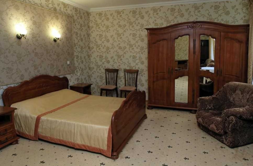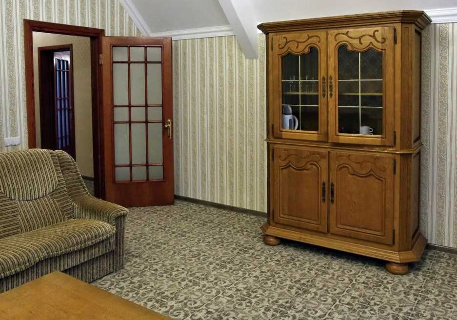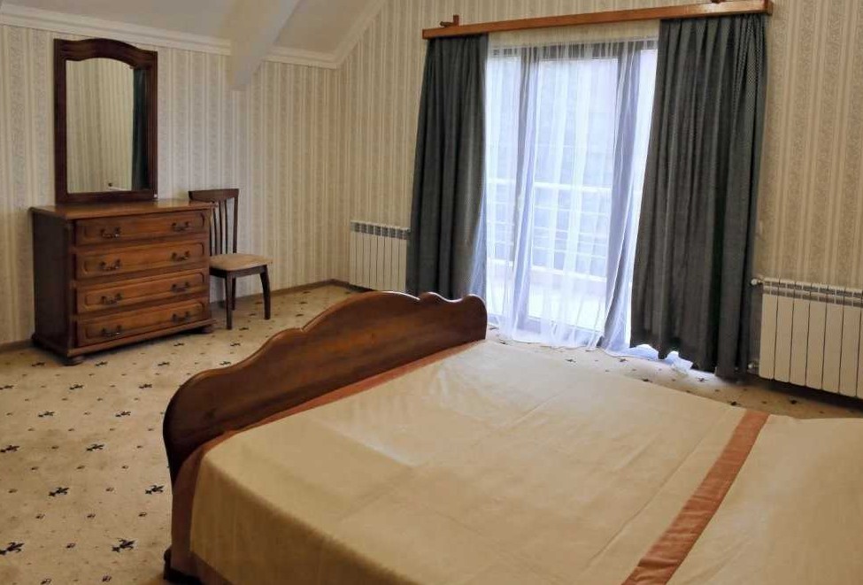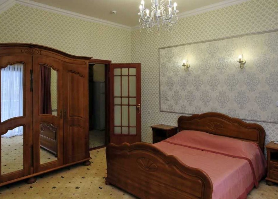 2 осн. места. 3 доп. места. Балкон. Мебель: вешалка, диван, зеркало, кровать двуспальная, прикроватные тумбочки, стол, стулья, шкаф. Оборудование: кондиционер, набор посуды, телевизор, телефон, холодильник, электрочайник. Санузел: с ванной, с душем или ванной, фен. Сервис: смена полотенец, смена постельного белья, уборка номера, услуги внутренней телефонной связи.