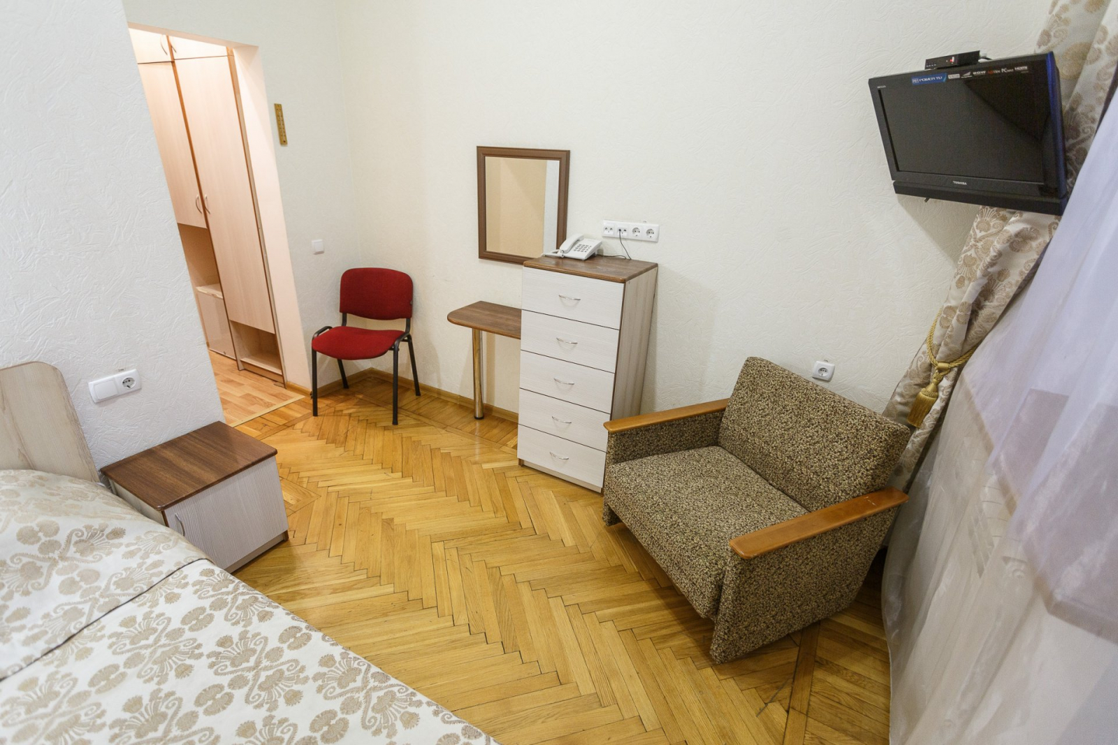 1 осн. место. 1 доп. место. Балкон. Мебель: вешалка, зеркало, кровать односпальная, прикроватная тумбочка, стол, стул, шкаф. Оборудование: кондиционер, набор посуды, телевизор, телефон, холодильник, электрочайник. Санузел: с душем, туалетные принадлежности, фен. Сервис: смена полотенец, смена постельного белья, уборка номера, услуги внутренней телефонной связи.
